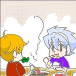 どこから食いついていいのかわからないマツカと、不思議な食感に横からモサモサむしって食べるキースでした。